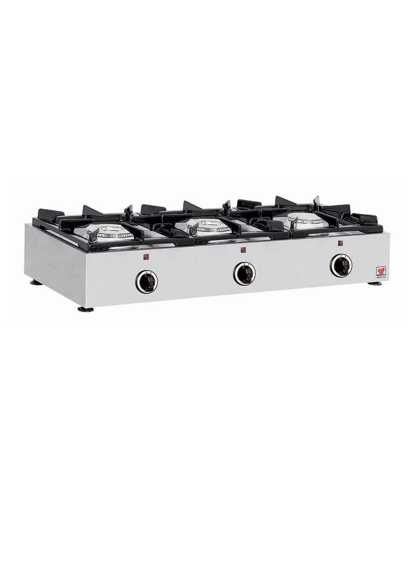 - Plinski kuhalnik s 3 zmogljivimi gorilniki iz litega železa (dva od njih uporabljata sistem z dvojnim plamenom).